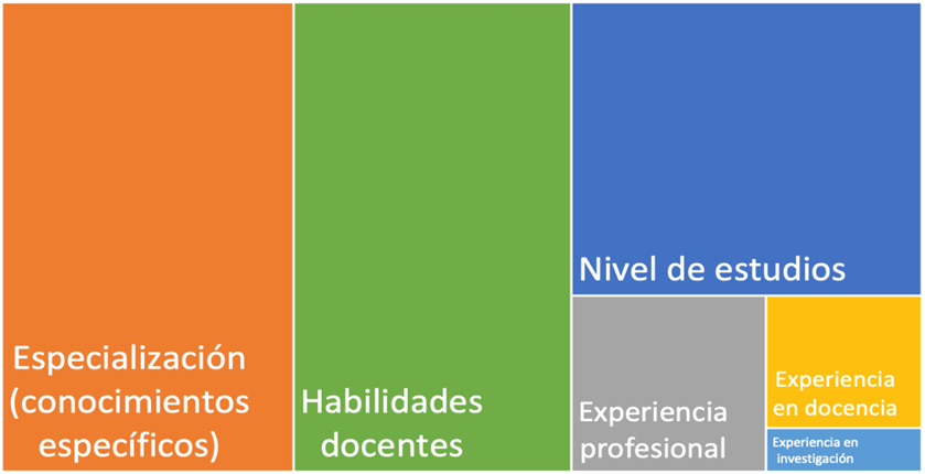 a os conocimientos específicos, las habilidades docentes, el nivel de estudios,