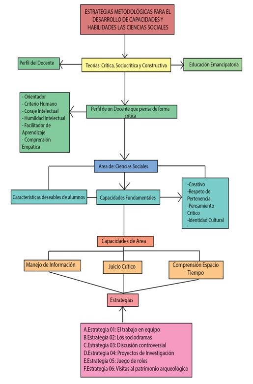 Las estrategias propuestas son: visitas al patrimonio arqueológico de la cultura Ñañañique, visitas a museos, trabajo en equipo, sociodramas, proyecto de investigación, discusión controversial, juego de roles. El cuadro 1 resume las estrategias metodológicas y los referentes teóricos que respaldan su efectividad.
