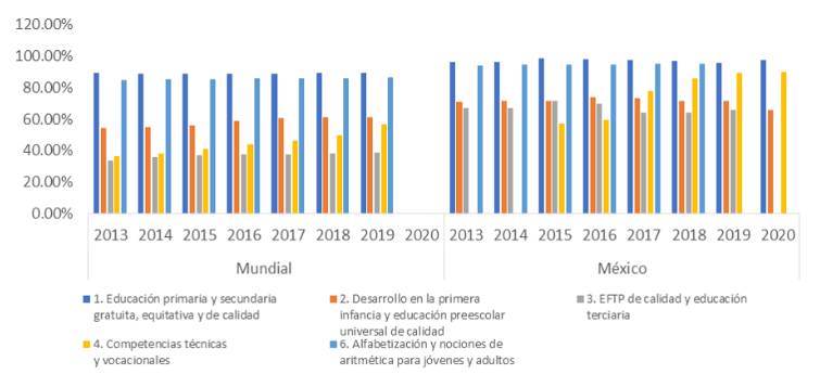 resultados de los indicadores del ODS4 de la Agenda 2030 así como los