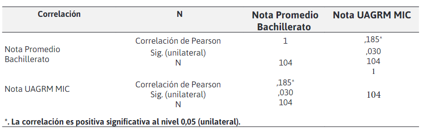 que existe una correlación positiva entre el rendimiento académico en el Bachillerato
